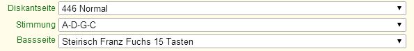den ersten drei Menüpunkten (Diskantseite, Stimmung, Bassseite)